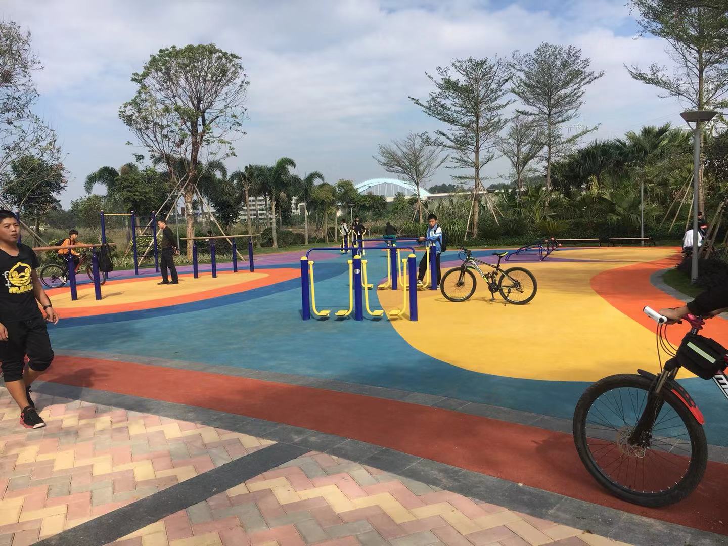 項(xiàng)目簡(jiǎn)介:彩色現(xiàn)澆EPDM地墊,配健身器材,為業(yè)主提供明亮的休閑游樂(lè)設(shè)備